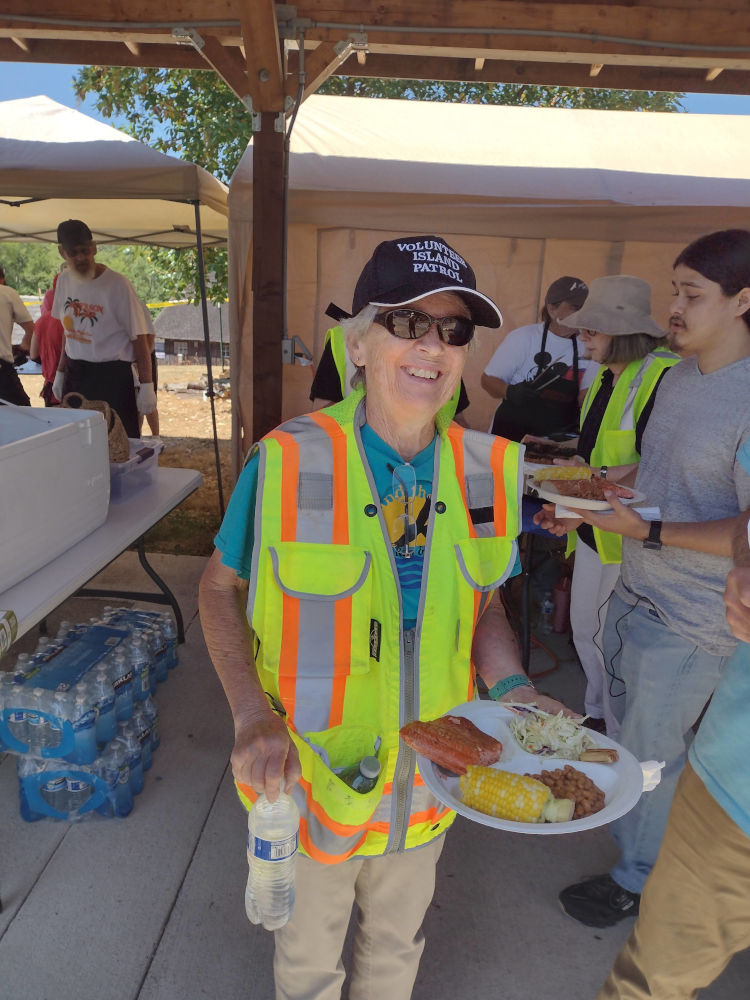 one hundred island volunteers help put on the Salmon and Rib bake, doing everything from purchasing and setup, to cooking and cleanup.